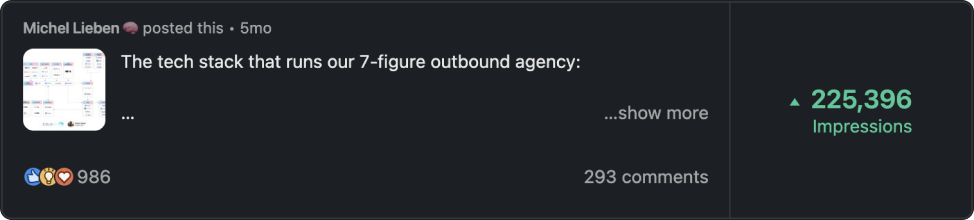 Join a private network of other founders, sellers, and marketers who are ahead of the curve in AI. We'll also help you grow your LinkedIn account, give you exclusive tech stack discounts, and keep you up-to-date with the latest in sales-tech and AI GTM.